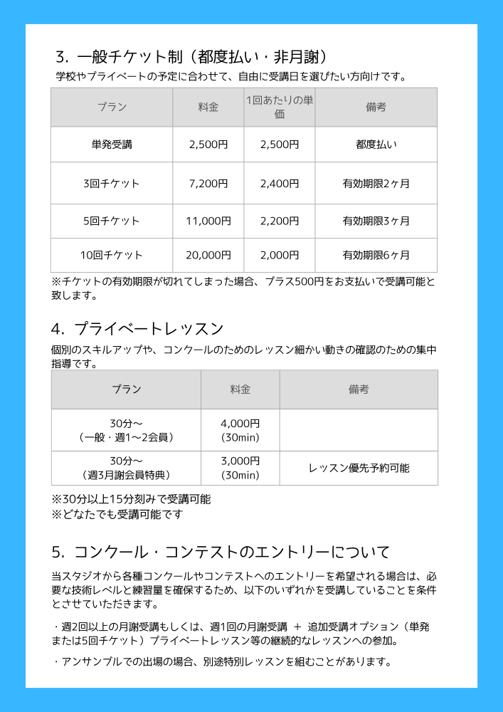 K-POP、テーマパーク、フリースタイル、コンテンポラリーダンス